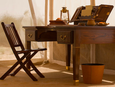 The administrators and armies of the British Empire in the Indian subcontinent were perhaps the largest consumer of campaign furniture leading to high quality local manufacturing of durable, practical and elegant ‘knock-down’ chairs, tables, desks, bookcases and beds. We have revived this craft using the finest furniture craftsmen and materials to present you with furniture and accessories of a lasting quality which will delight you for a lifetime indoors or outdoors, at home or at your camp.